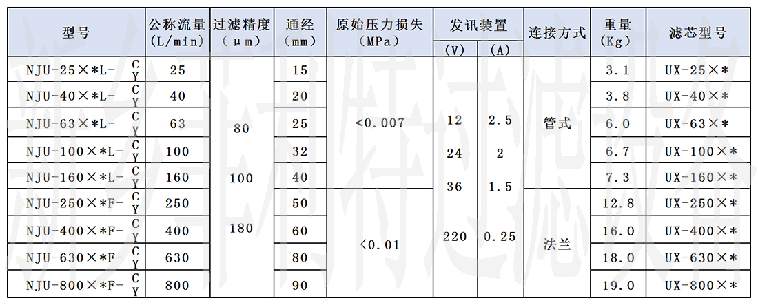- 型號:NJU系列液壓過濾器