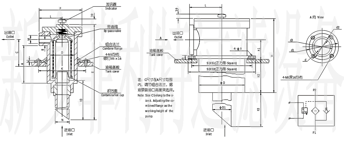 (一)、簡介NJU系列箱外內積式吸油過濾器,具有連接方便、清洗或更換濾芯容易,易實現油箱封閉化,并設有組合法蘭、旁通閥、污染積物盅、堵塞發訊器等裝置。本產品經許多科研單位技術審查,經百家主機廠批量配套使用后證明,效果很好,并獲國家專利局實用新型專利證書。