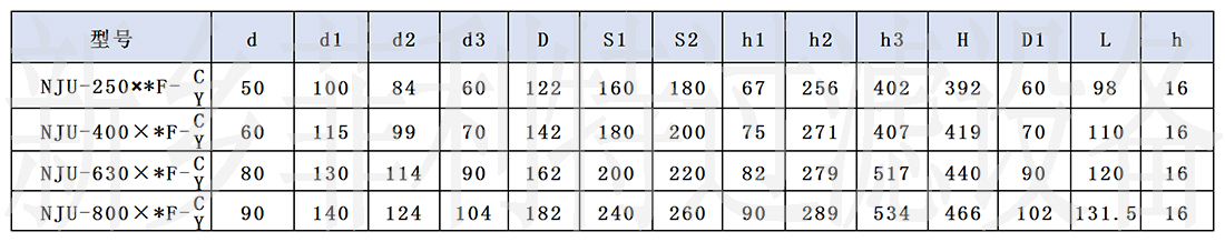 1、NJU-25~160型(對照表一) 2、NJU-250~800型(對照表二)