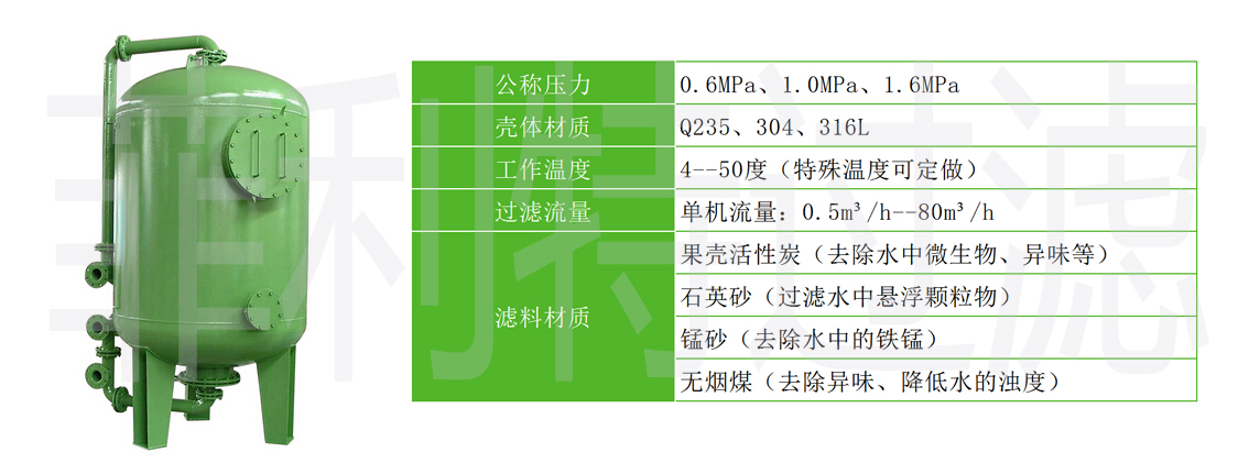 活性炭過濾器 活性炭過濾器的工作是通過炭床來完成的。組成炭床的活性炭顆粒有非常多的微孔和巨大的比表面積,具有很強(qiáng)的物理吸附能力。水通過炭床,水中有機(jī)污染物被活性炭有